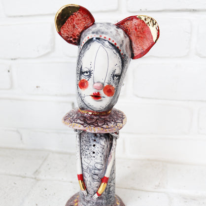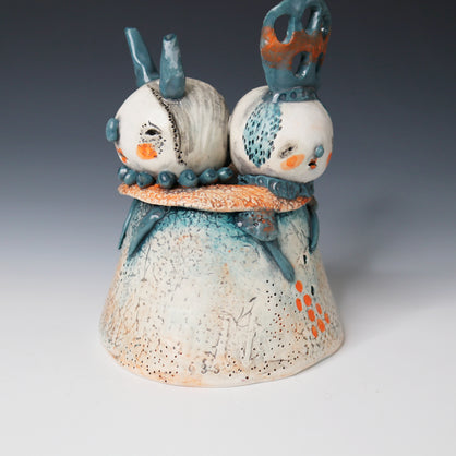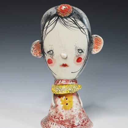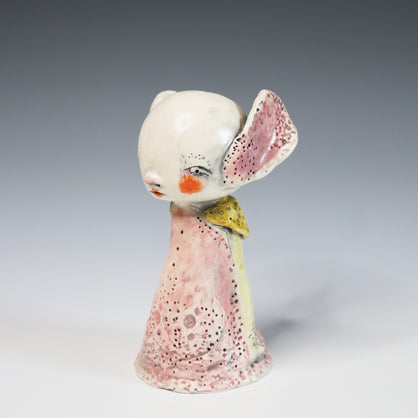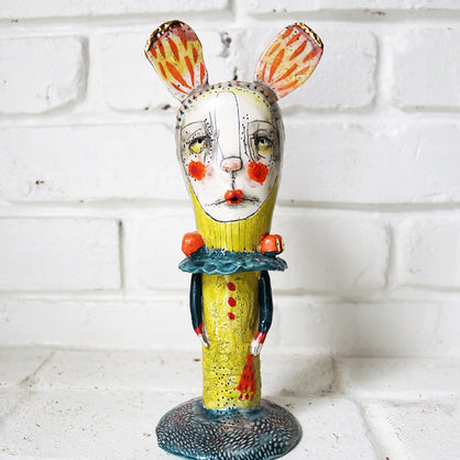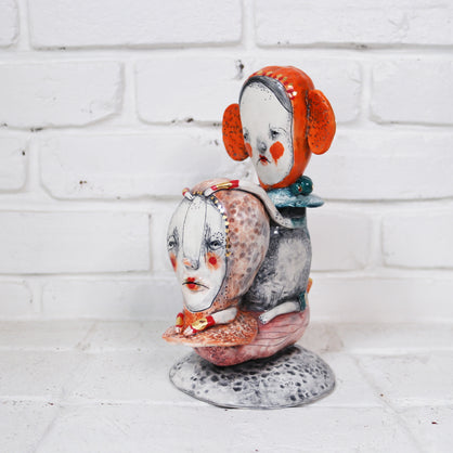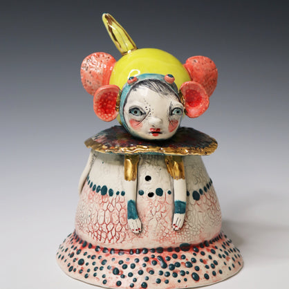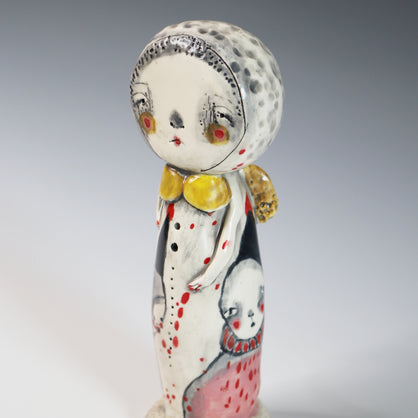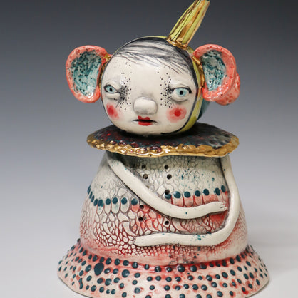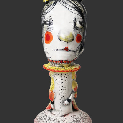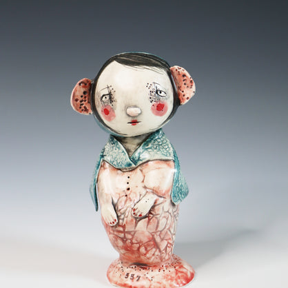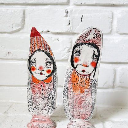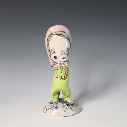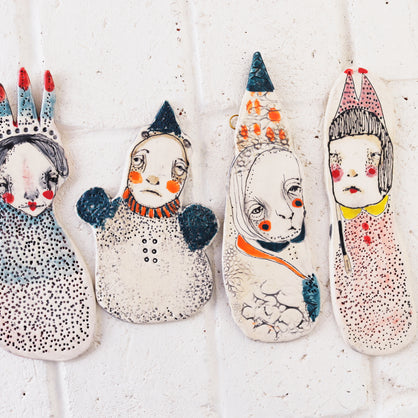 I work primarily with clay, allowing characters and worlds to emerge without force or plan. Slightly off-center and quietly strange, my work lives somewhere between tenderness and shadow—objects that feel discovered rather than designed.